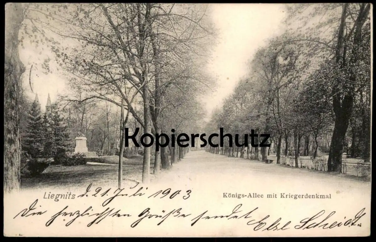 ALTE POSTKARTE LIEGNITZ KÖNIGS-ALLEE MIT KRIEGERDENKMAL KÖNIGSALLEE DENKMAL SCHLESIEN Legnica postcard Ansichtskarte