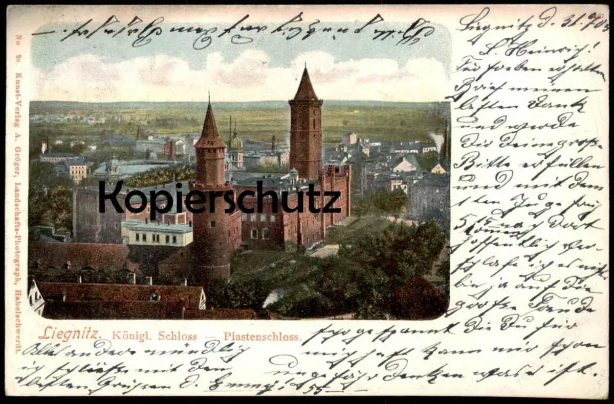 ALTE POSTKARTE LIEGNITZ SCHLESIEN KÖNGIGLICHES SCHLOSS PIASTENSCHLOSS PANORAMA castle Legnica postcard Ansichtskarte