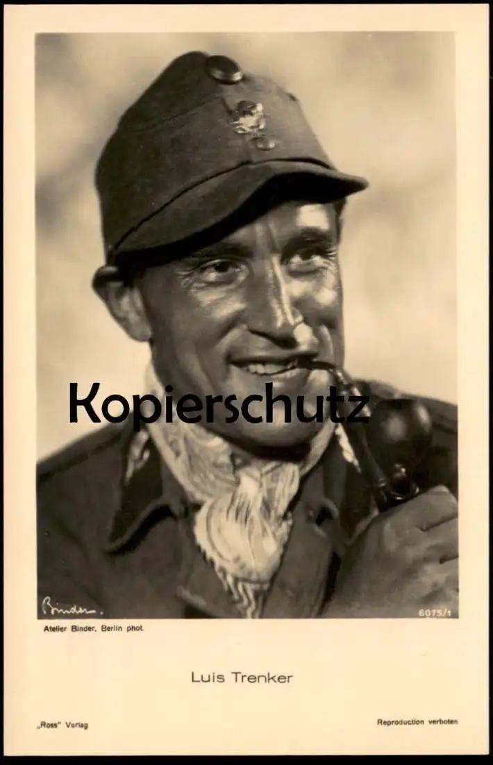 ALTE POSTKARTE LUIS TRENKER FILM-SCHAUSPIELER ATELIER BINDER BERLIN ROSS VERLAG Mütze Pfeife Bergführer actor postcard