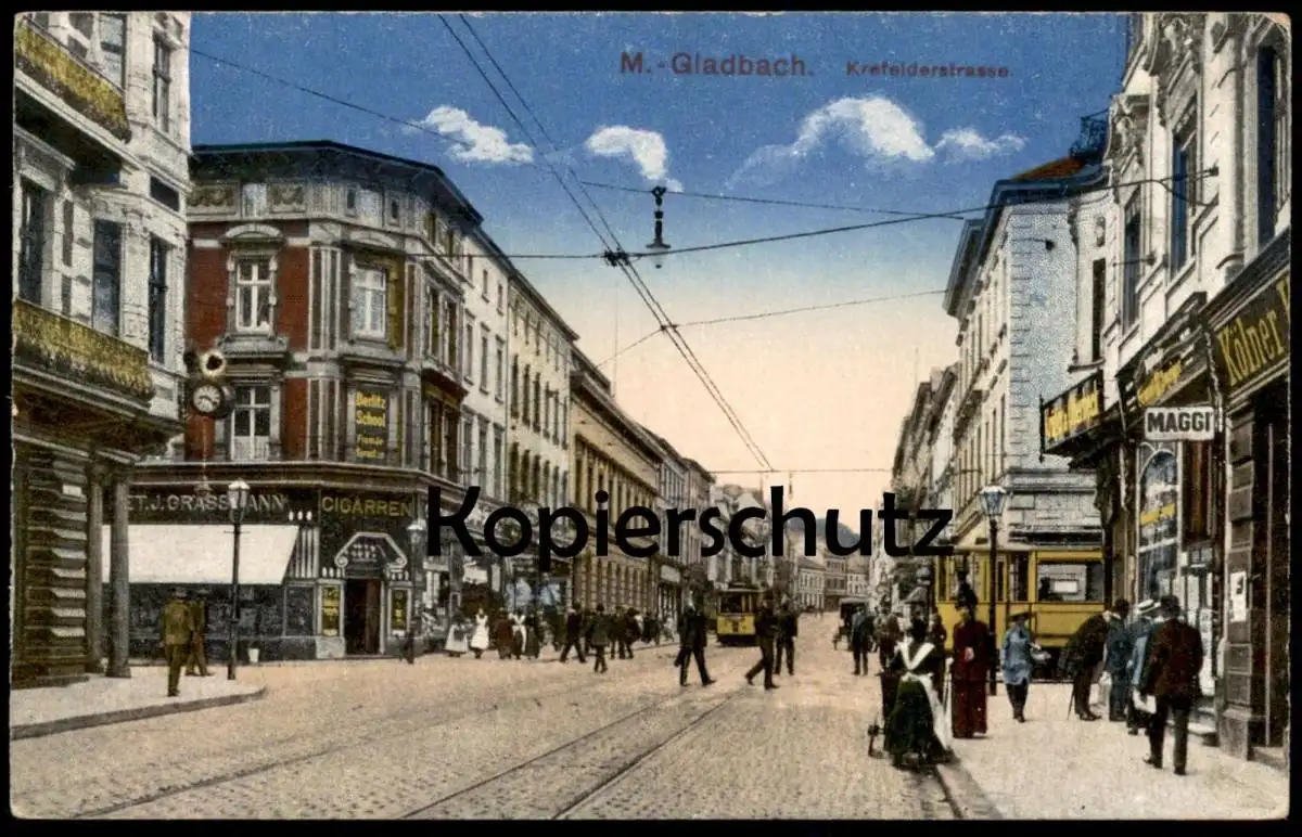 ALTE POSTKARTE M.-GLADBACH KREFELDERSTRASSE GESCHÄFT MAGGI CIGARREN STRASSENBAHN BERLITZ KÖLNER .. MÖNCHENGLADBACH AK