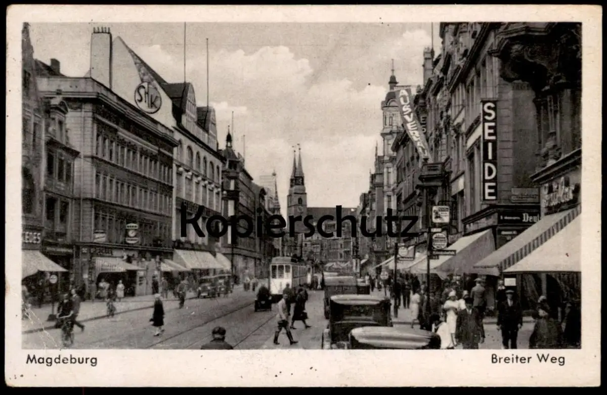ALTE POSTKARTE MAGDEBURG BREITER WEG SEIDE AUSVERKAUF STRASSENBAHNVerlag: unbekannt