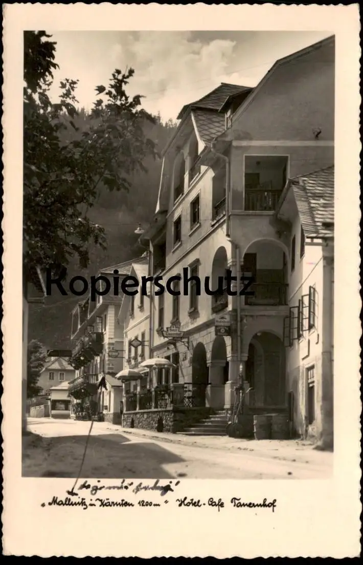 ALTE POSTKARTE MALLNITZ IN KÄRNTEN HOTEL CAFE TAUERNHOF MIT TANSTELLE BLECHSCHILD SPHINX BENZIN MOBILOIL GÖSSER postcard
