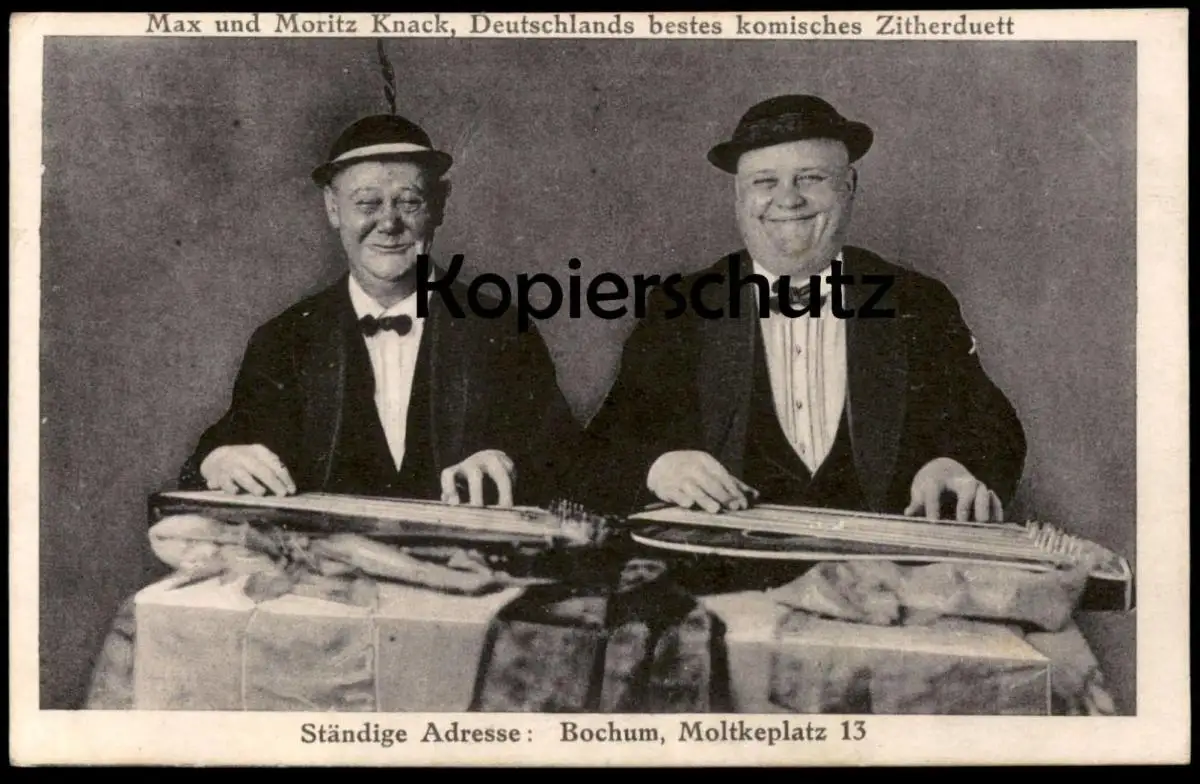 ALTE POSTKARTE MAX UND MORITZ KNACK DEUTSCHLANDS BESTES KOMISCHES ZITHERDUETT ZITHER ADRESSE BOCHUM MOLTKEPLATZ 13 cpa