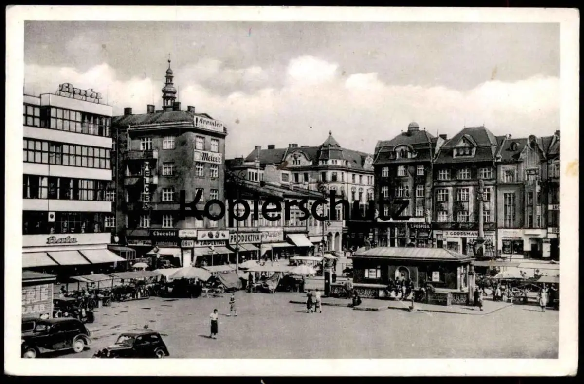 ALTE POSTKARTE MÄHRISCH OSTRAU MORAVSKA OSTRAVA HAUPTPLATZ GESCHÄFT T. POSPISIL J. GROSSMANN MELCER