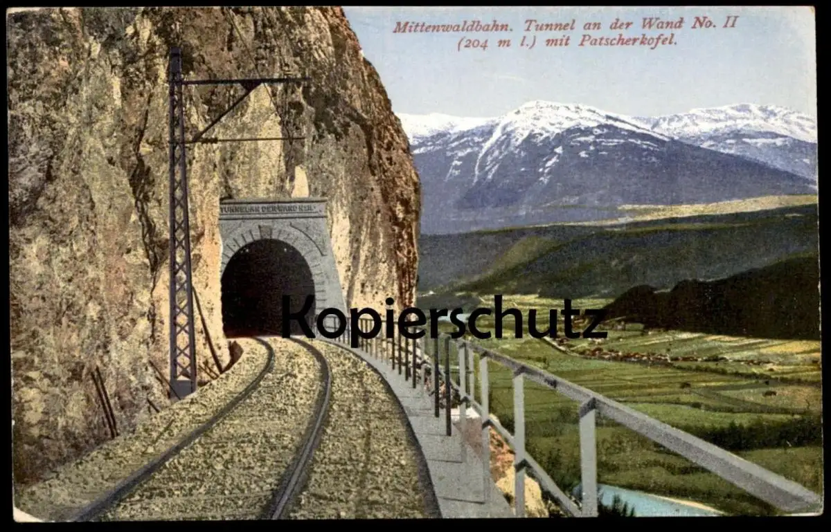 ALTE POSTKARTE MITTENWALDBAHN TUNNEL AN DER WAND No.II MIT PATSCHERKOFEL Eisenbahn Chemin de fer Railway Mittenwald-Bahn