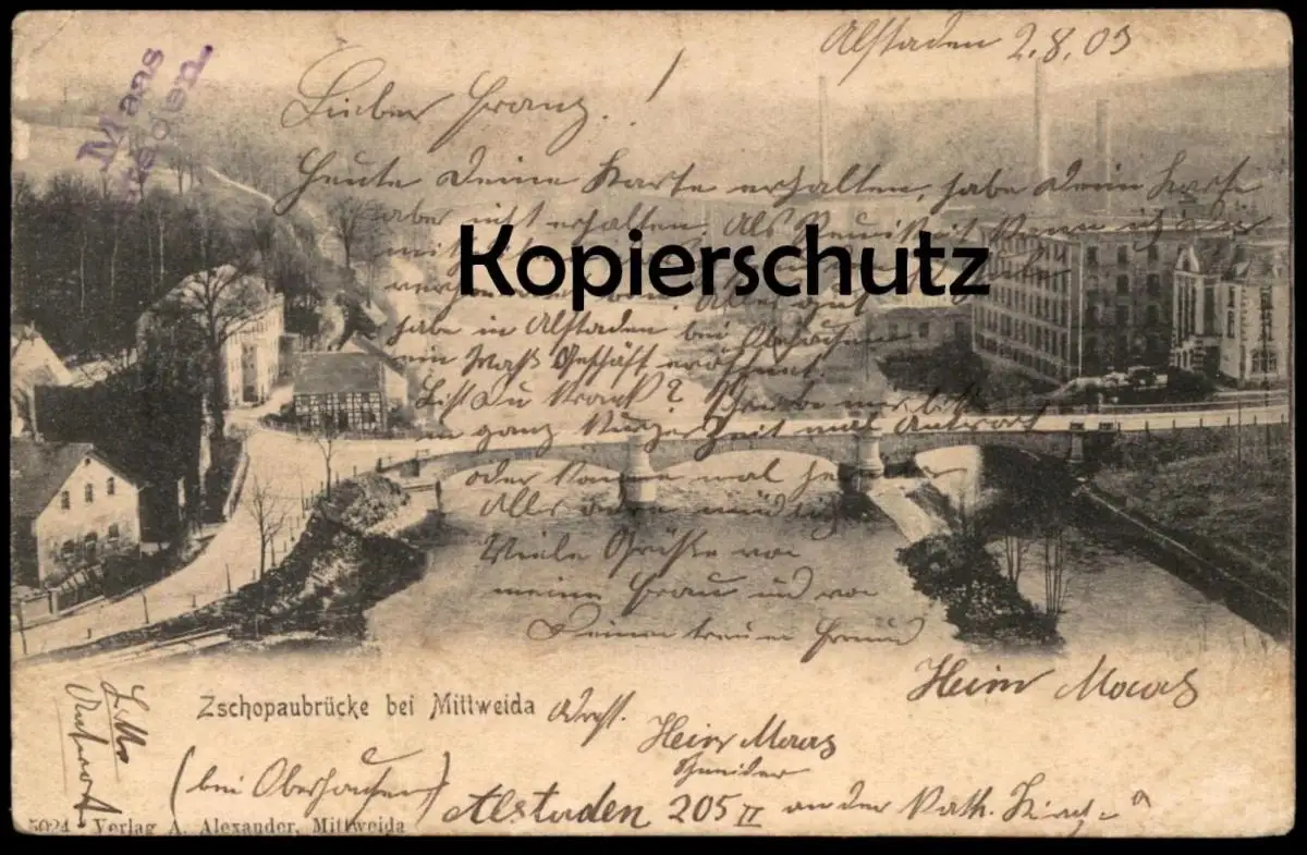 ALTE POSTKARTE MITTWEIDA ZSCHOPAUBRÜCKEVerlag: A. Alexander, Mittweida