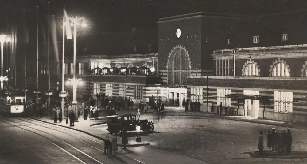 ALTE POSTKARTE MÜNSTER NACHTAUFNAHME VOM HAUPTBAHNHOFVerlag: E. Krahn, Münster