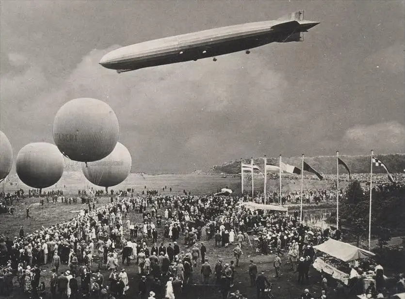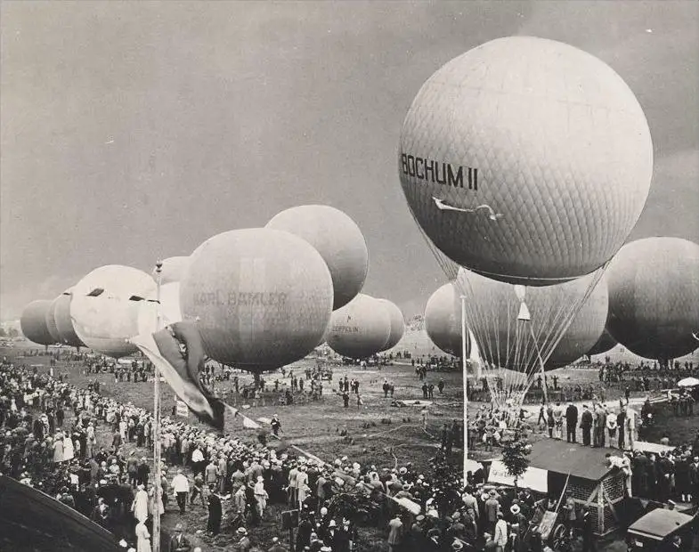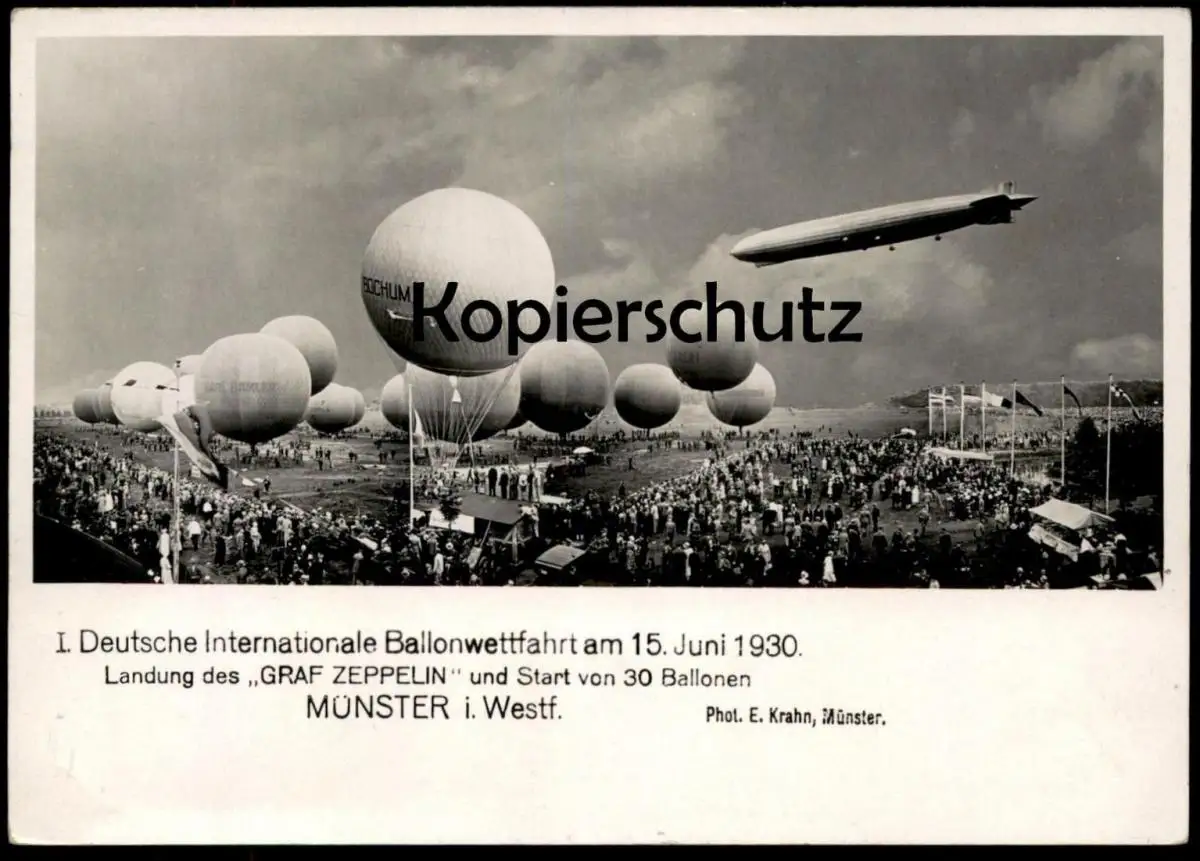 ALTE POSTKARTE MÜNSTER I. DEUTSCHE INTERNATIONALE BALLONWETTFAHRT AM 15. JUNI 1930. LANDUNG DES GRAF ZEPPELIN UND START VON 30 BALLONENVerlag: Phot. E. Krahn, Münster