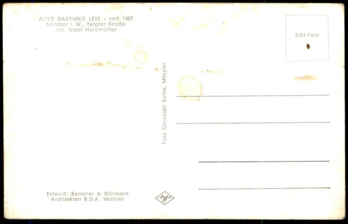 ALTE POSTKARTE MÜNSTER I. W. ALTES GASTHAUS LEVE SEIT 1607 TELGTER STRASSE INHABER JOSEF HORSTMÖLLER