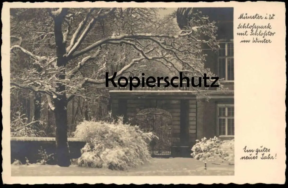 ALTE POSTKARTE MÜNSTER SCHLOSSPARK MIT SCHLOSSTOR IM WINTER EIN GUTES NEUES JAHR! Muenster cpa postcard AK Anischtskarte