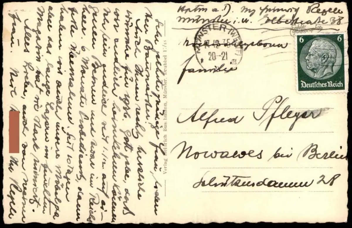 Gelaufen: 27.12.1935 mit Stempel Münster nach Nowawes bei BerlinErhaltung (s. Scan): gut - sehr gut / 916094