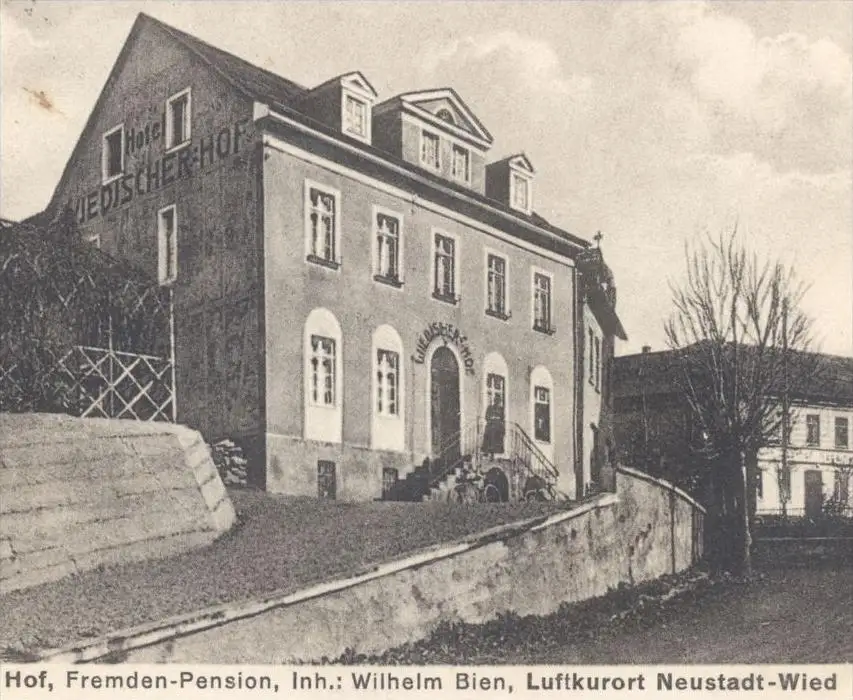 ALTE POSTKARTE NEUSTADT-WIED HOTEL FREMDEN-PENSION WIEDISCHER HOF BESITZER WILHELM BIEN Asbach