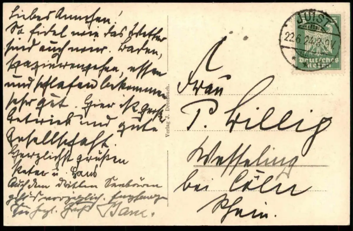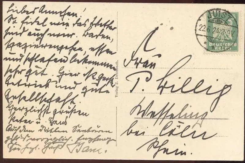 Verlag: J. DreesbachGelaufen: 22.06.1924 mit Stempel Juist nach Wesseling bei CölnErhaltung (s. Scan): gut / 915700