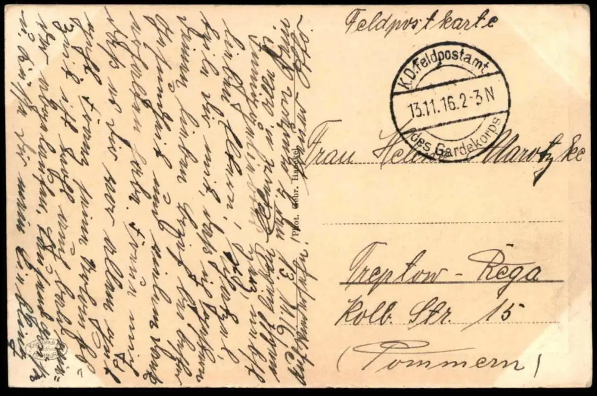 Gelaufen: 13.11.1916 als Feldpost nach Treptow Rega Pommern
