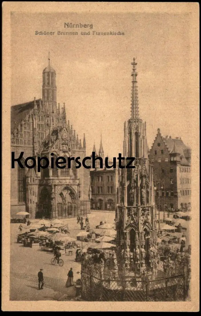 ALTE POSTKARTE NÜRNBERG SCHÖNER BRUNNEN MIT FRAUENKIRCHE MARKT RADFAHRER Kirche fountain fontaine Ansichtskarte postcard