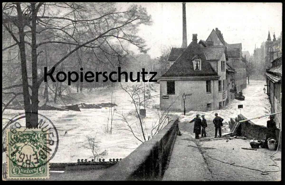 ALTE POSTKARTE NÜRNBERG HOCHWASSER 05.02.1909 ÜBERFLUTETE AGNESBRÜCKE