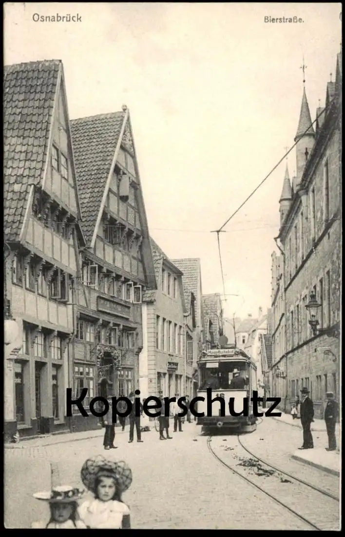ALTE POSTKARTE OSNABRÜCK BIERSTRASSE MÄDCHEN STRASSENBAHN WAGEN 16 ZIEL HAUPTBAHNHOFVerlag: Cramers, Dortmund, 1906