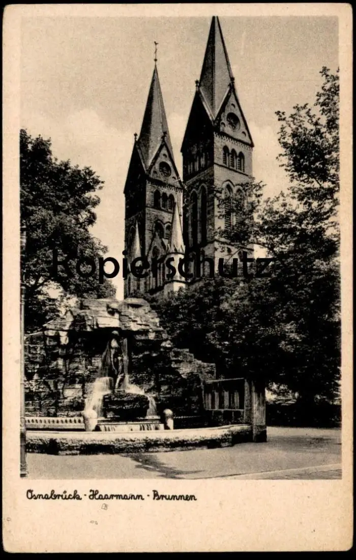 ALTE POSTKARTE OSNABRÜCK HAARMANN-BRUNNEN UND HERZ-JESU-KIRCHE
