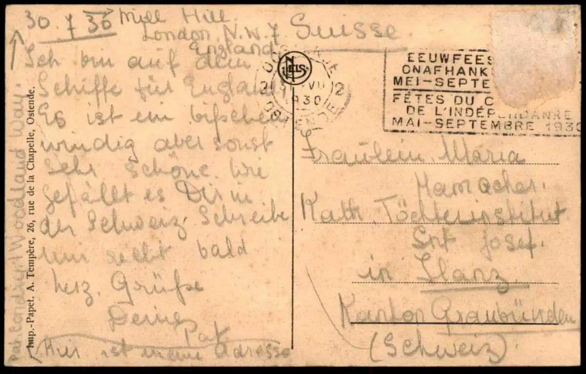 Gelaufen: 30.07.1936 nach Stanz Kanton Graubünden, Briefmarke entfernt
