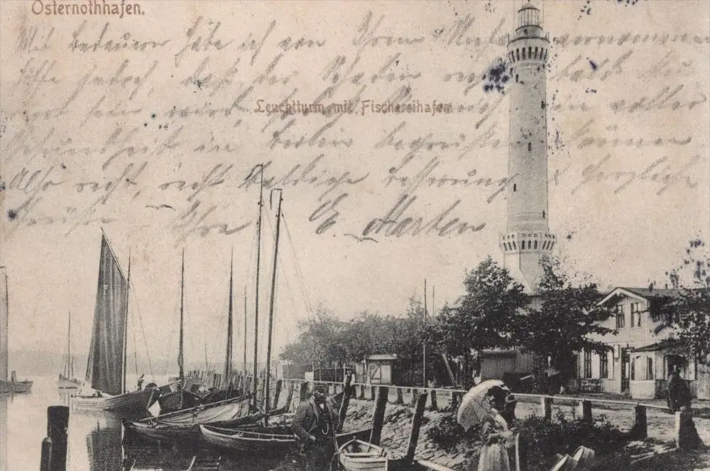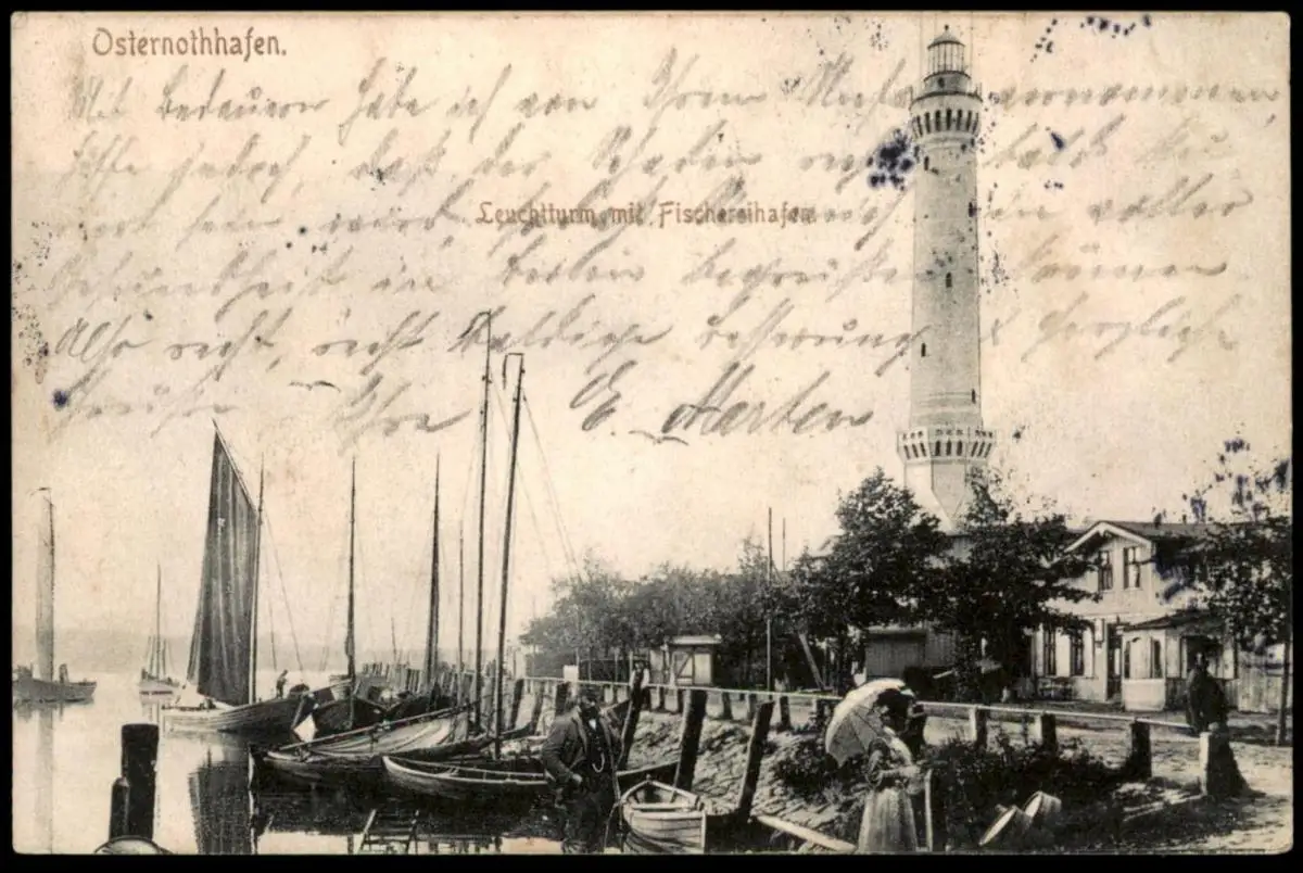 ALTE POSTKARTE OSTERNOTHHAFEN LEUCHTTURM
