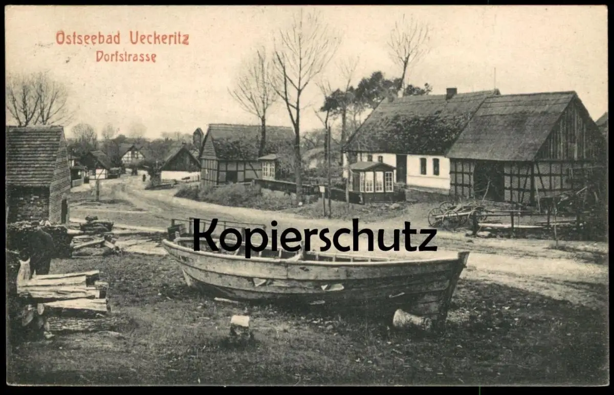 ALTE POSTKARTE OSTSEEBAD UECKERITZ DORFSTRASSE BOOT MANN MIT KIND USEDOM Ansichtskarte AK cpa postcard