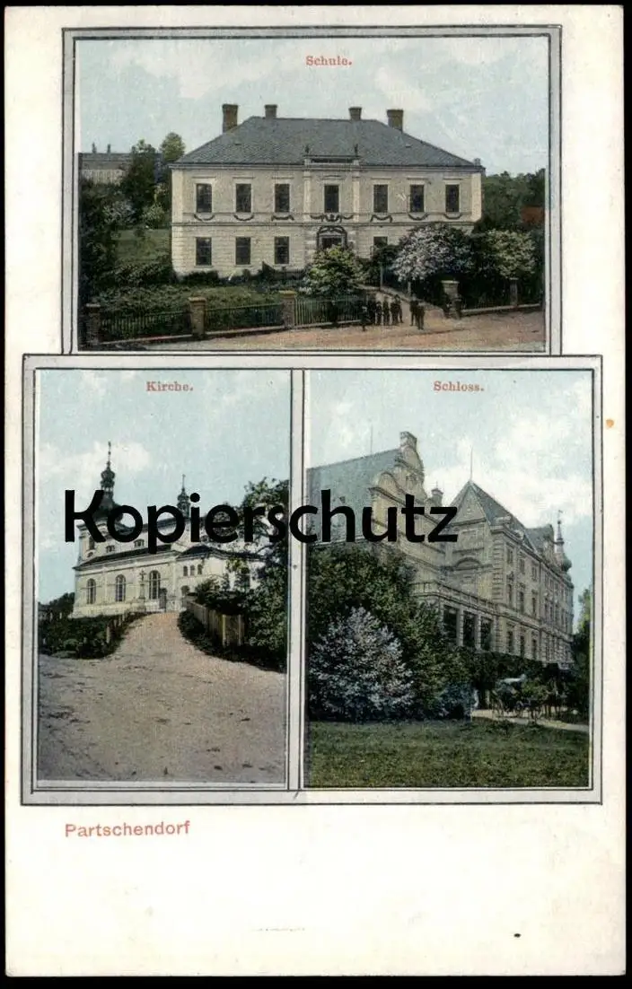 ALTE POSTKARTE PARTSCHENDORF SCHULE KIRCHE SCHLOSS BARTOSOVICE MÄHREN Ansichtskarte cpa AK postcard