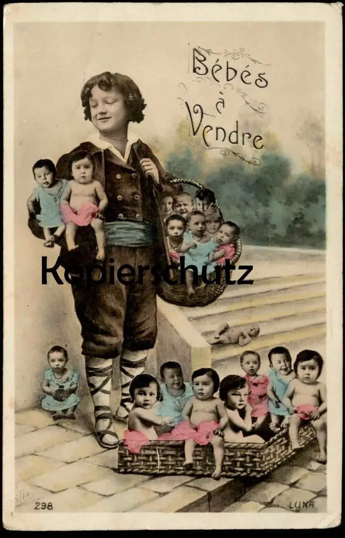 ALTE POSTKARTE PHOTOMONTAGE BÉBÉS À VENDRE KINDER ZU VERKAUFENVerlag: Luna