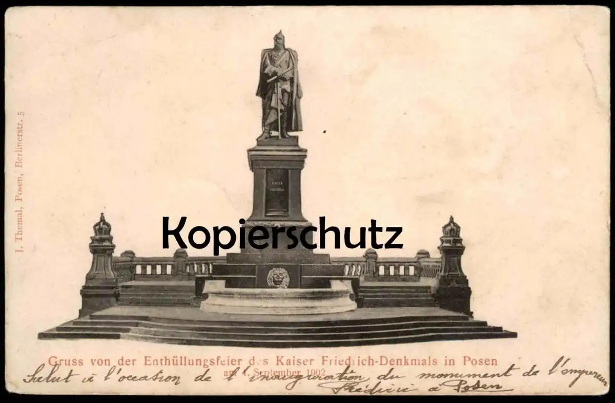 ALTE POSTKARTE POSEN GRUSS VON DER ENTHÜLLUNGSFEIER DES KAISER FRIEDRICH DENKMALS 1902 Denkmal Poznan Polska postcard