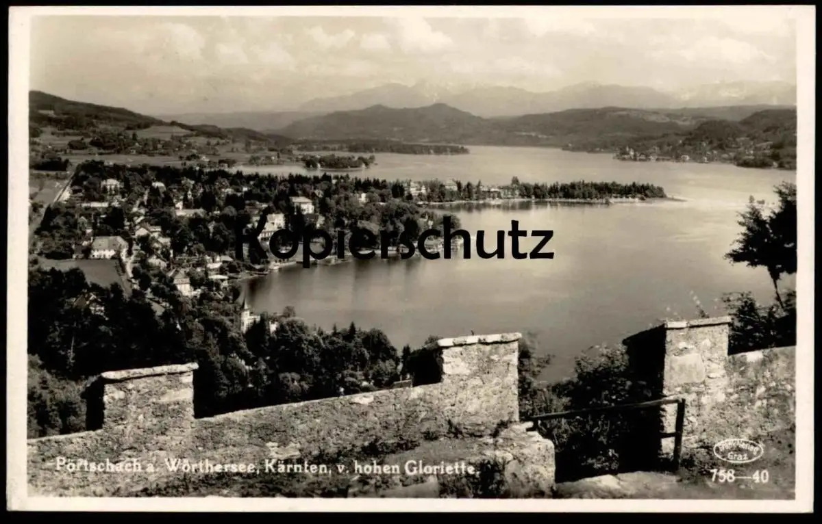 ALTE POSTKARTE PÖRTSCHACH AM WÖRTHERSEE KÄRNTEN VON HOHEN GLORIETTE PANORAMA