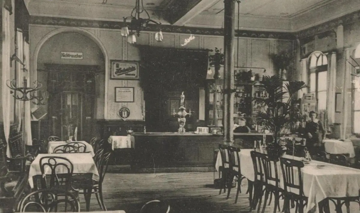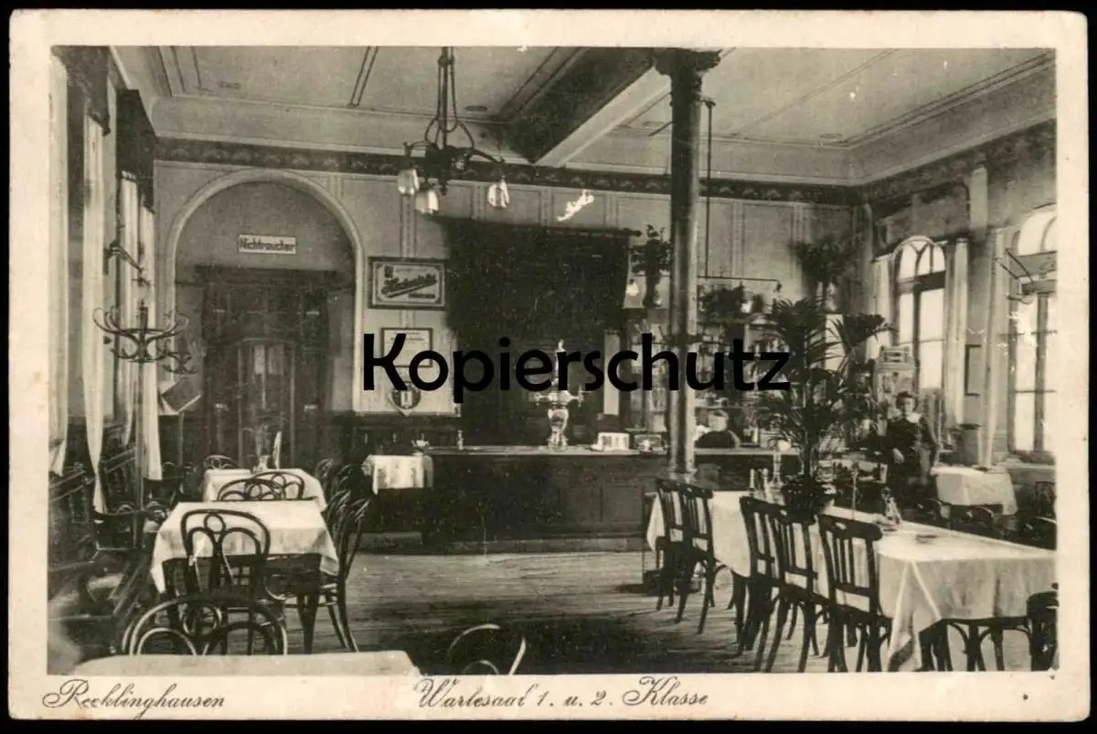 ALTE POSTKARTE RECKLINGHAUSEN WARTESAAL 1. UND 2. KLASSE INNENANSICHT THEKE SCHILD NICHTRAUCHER