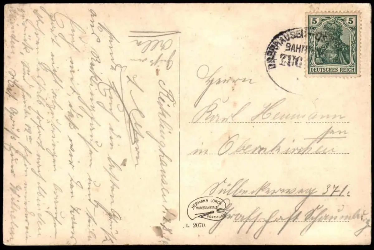 Gelaufen: 02.08.1914 mit Bahnpost-Stempel Zug Oberhausen - Os... nach Obernkirchen