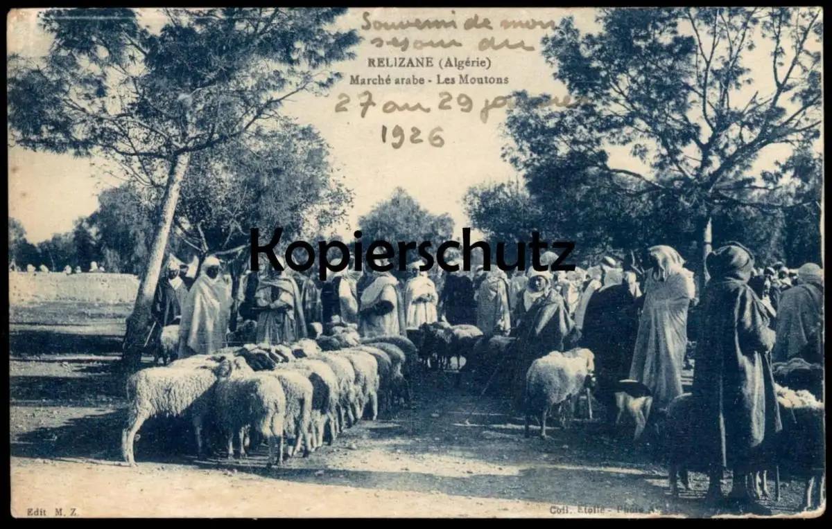 ALTE POSTKARTE RELIZANE MARCHÉ ARABE LES MOUTONS Markt market Schafe Schaf sheep Alger Algerien Algérie Algeria postcard