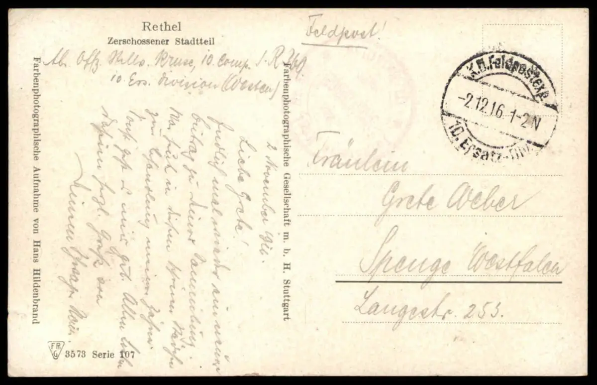 Gelaufen: 02.12.1916 als Feldpost nach Spenge in Westfalen