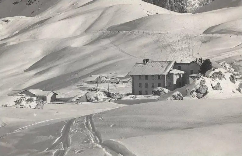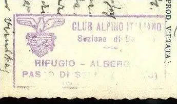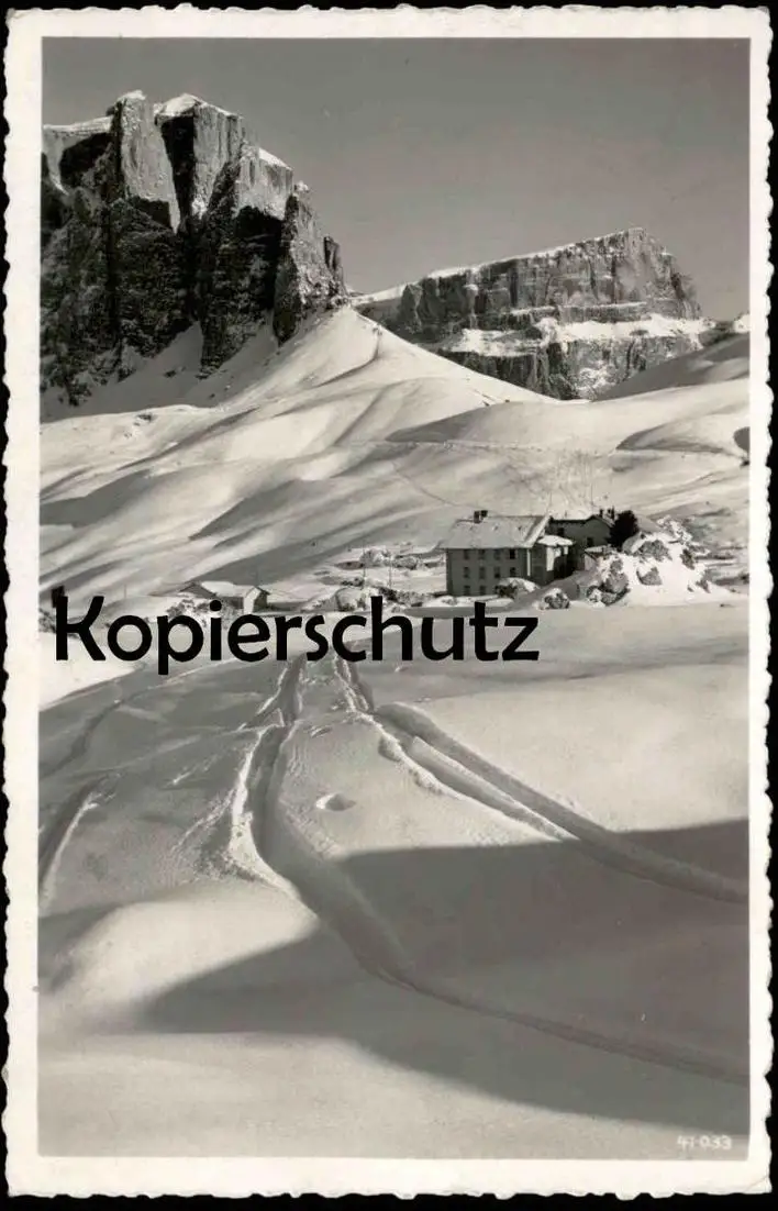 ALTE POSTKARTE RIFUGIO PASSO SELLA GRUPPO 1936 Dolomiti Stempel Club Alpino Italiano Italia Italy Mountain Winter Snow