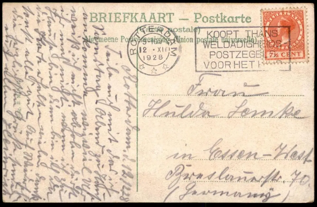 Gelaufen: 12.11.1928 mit Stempel Rotterdam nach Essen-West
