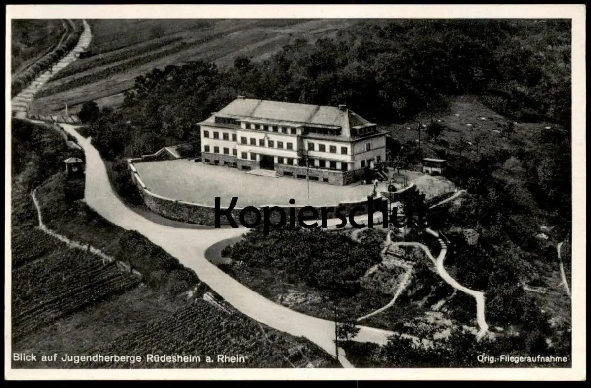 ALTE POSTKARTE RÜDESHEIM AM RHEIN BLICK AUF DIE JUGENDHERBERGE LUFTBILD FLIEGERAUFNAHME