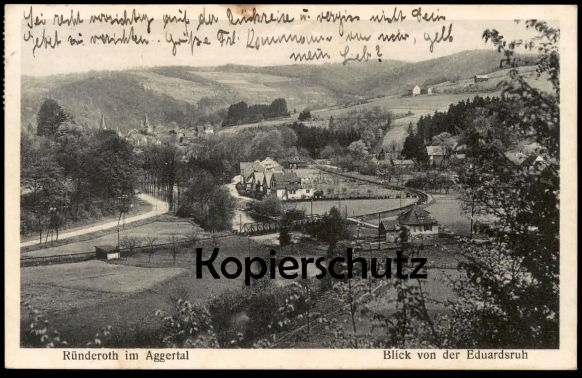 ALTE POSTKARTE RÜNDEROTH IM AGGERTAL BLICK VON DER EDUARDSRUHVerlag: Kurt Schneider, Hoffnungsthal bei Köln