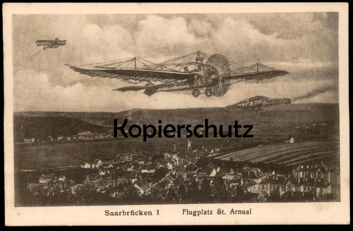 ALTE POSTKARTE SAARBRÜCKEN 1 FLUGPLATZ ST. ARNUAL FLUGZEUG RUMPLER TAUBEVerlag: Bruno Goerz-Beuerle, Saarbrücken