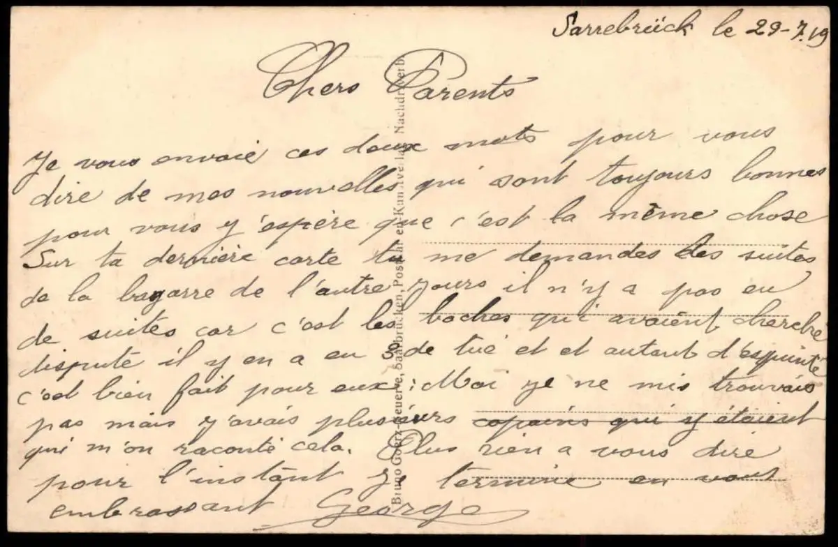Gelaufen: nein, beschrieben 29.07.1919