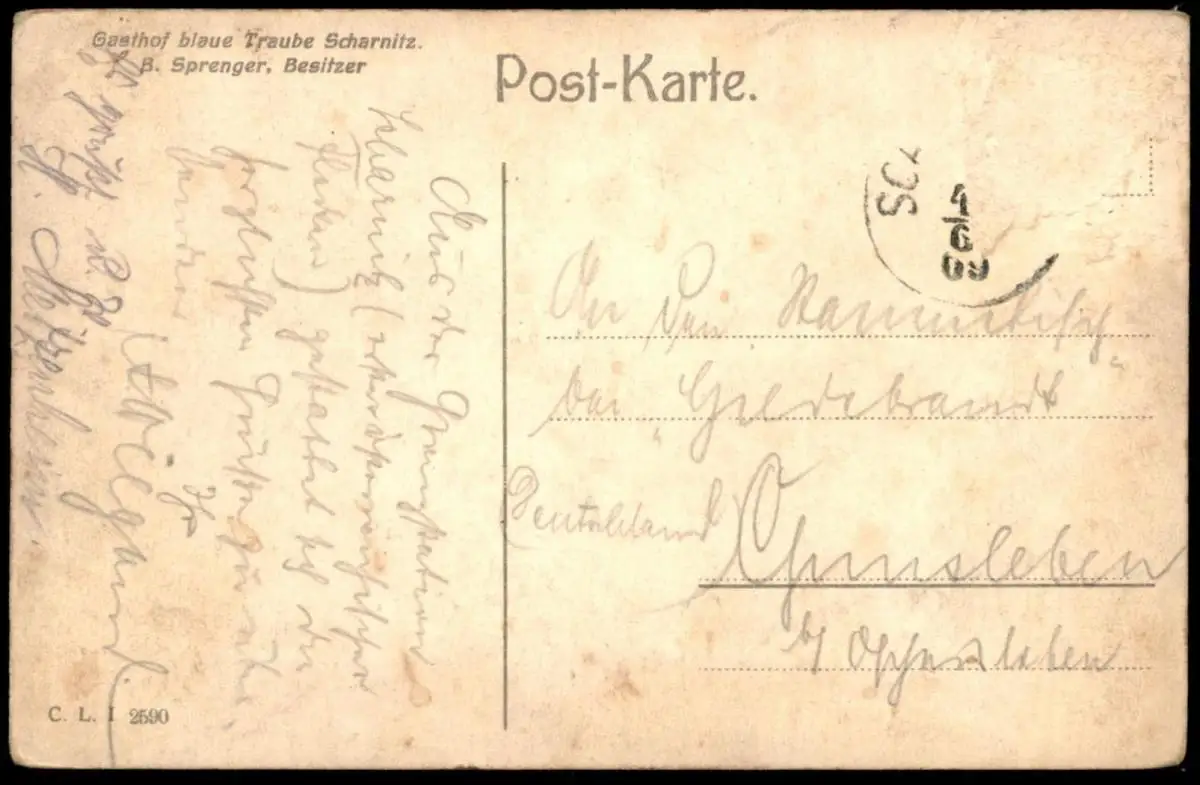 ALTE POSTKARTE SCHARNITZ GASTHOF BLAUE TRAUBE BESITZER B. SPRENGER
