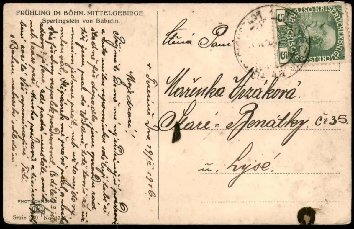 ALTE POSTKARTE SPERLINGSTEIN VON BABUTIN FRÜHLING IM BÖHMISCHEN MITTELGEBIRGE