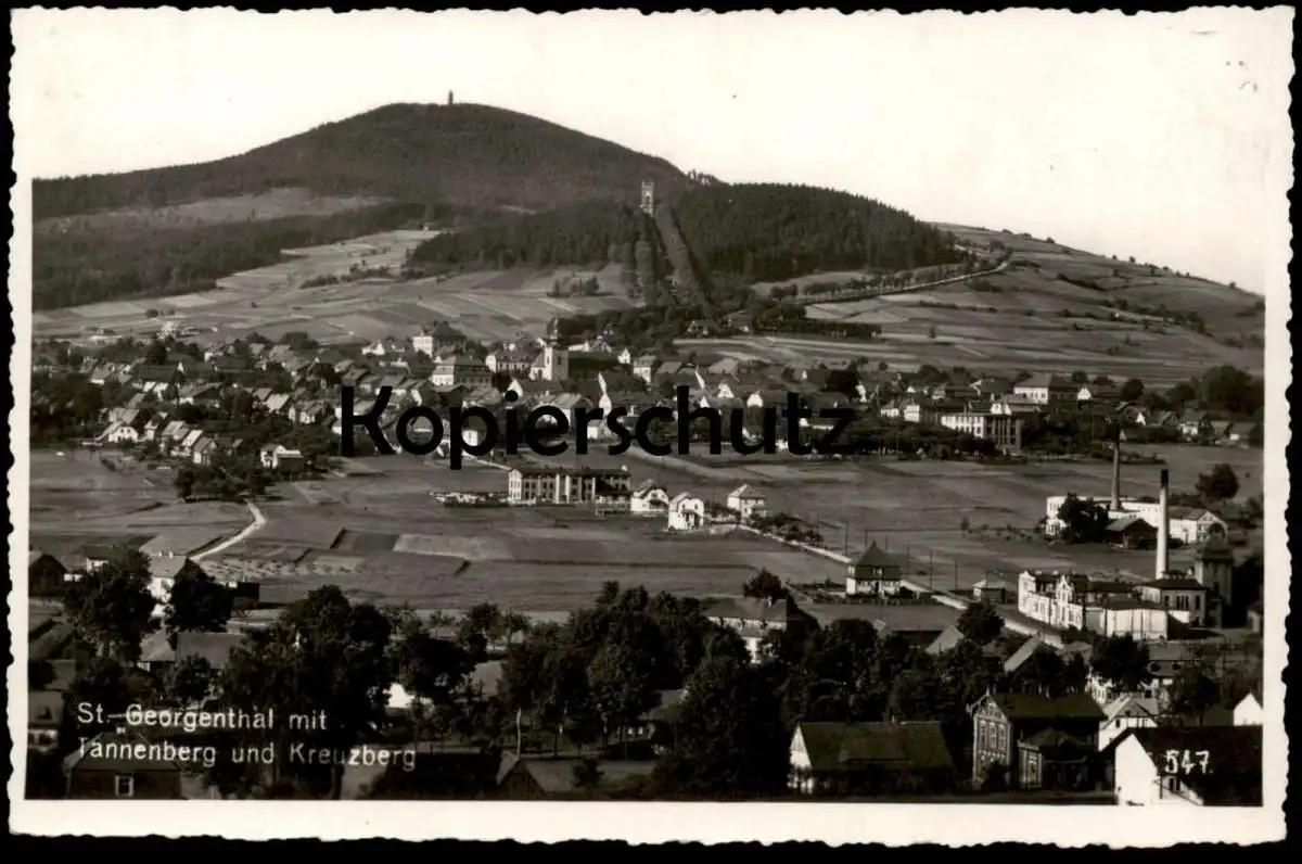 ALTE POSTKARTE ST. GEORGENTHAL TANNENBERG UND KREUZBERG BÖHMEN JIRETIN POD JEDLOVOU JOSEF FISCHER BERGRESTAURANT AK cpa
