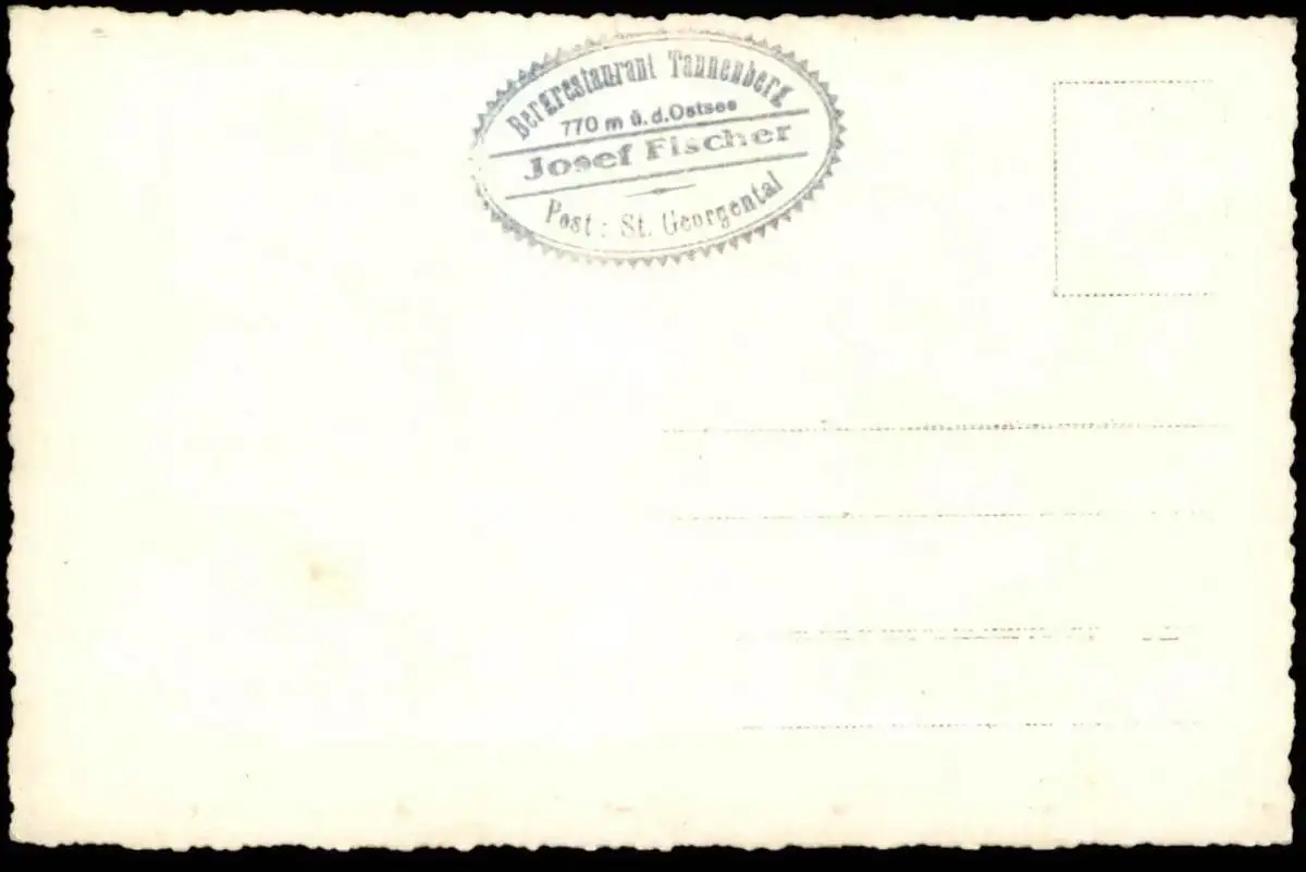 ALTE POSTKARTE ST. GEORGENTHAL TANNENBERG UND KREUZBERG BÖHMEN JIRETIN POD JEDLOVOU STEMPEL JOSEF FISCHER BERGRESTAURANT TANNENBERG 770 METER ÜBER DER OSTSEEVerlag: unbekannt