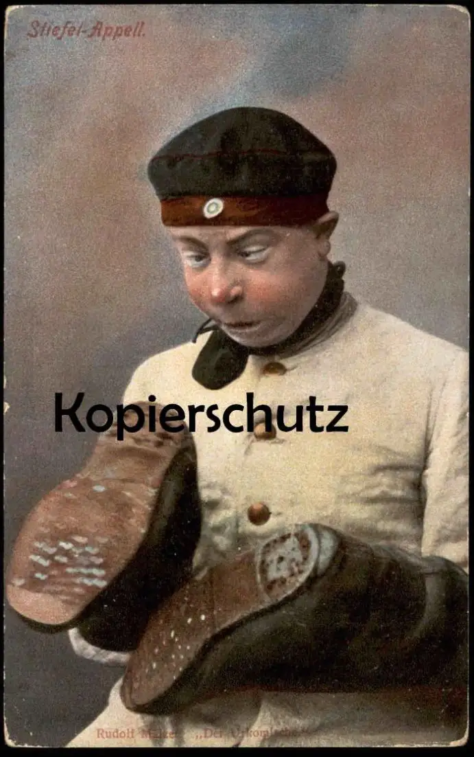 ALTE POSTKARTE STIEFEL-APPELL RUDOLF MELZER DER URKOMISCHE SOLDAT WELTKRIEG