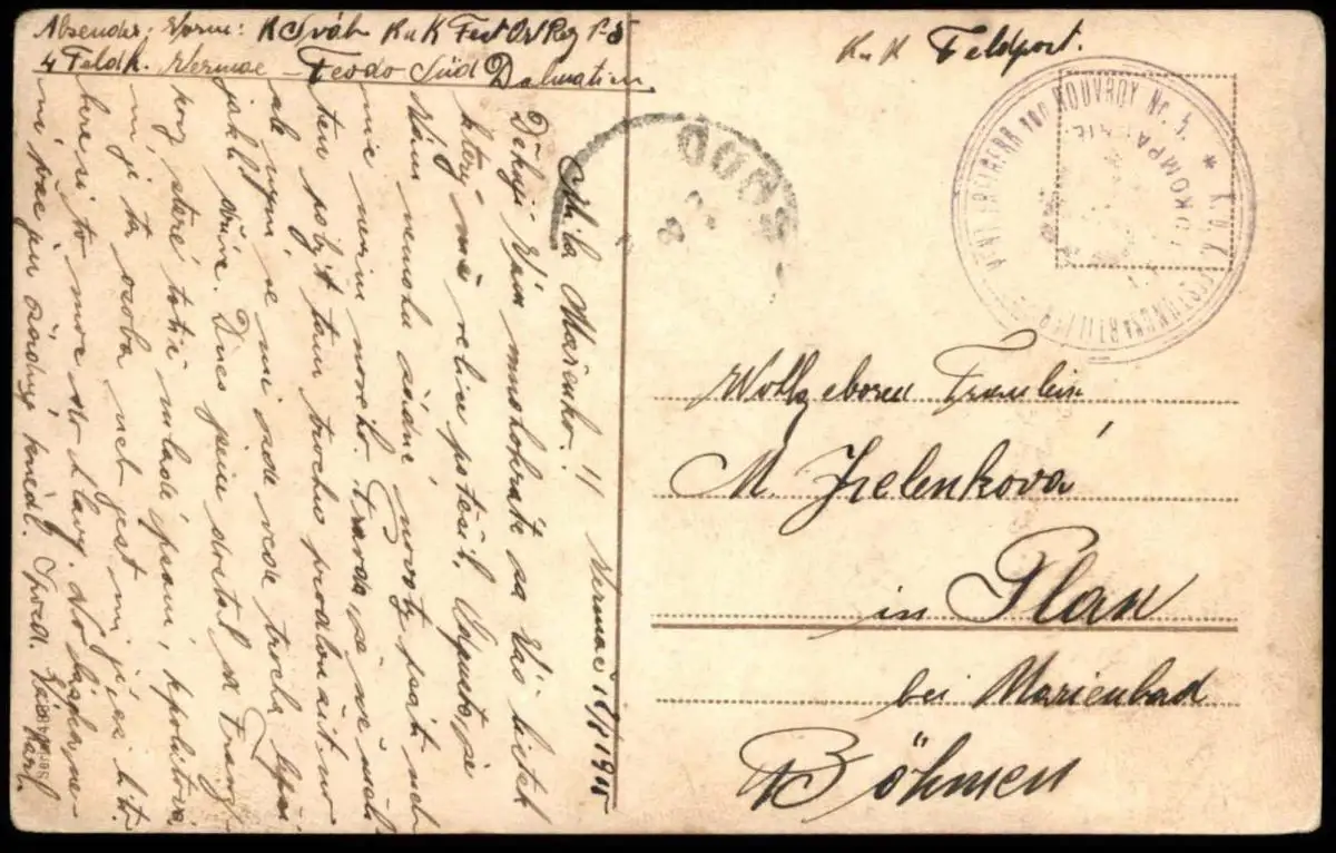 Gelaufen: 18.08.1915 als Feldpost aus Dalmatien nach Marienbad BöhmenErhaltung (s. Scan): gut / 915581