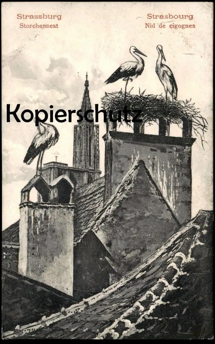 ALTE POSTKARTE STRASSBURG STRASBOURG NID DE CIGOGNES STORCH Cigogne Vogel Bird Stork Alsace Elsass cpa postcard AK