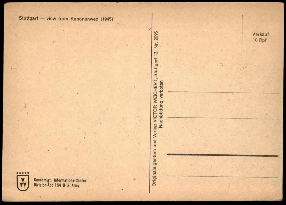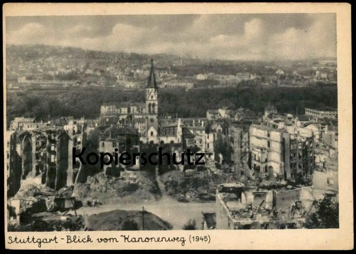 ALTE POSTKARTE STUTTGART BLICK VOM KANONENWEG 1945 Verlag: Victor Weichert, Stuttgart, Genehmigt: Informations-Control Division Apo 154 U.S.Army
