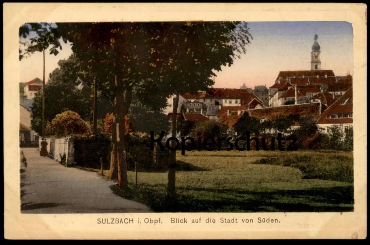 ALTE POSTKARTE SULZBACH IN DER OBERPFALZ BLICK AUF DIE STADT VON SÜDEN