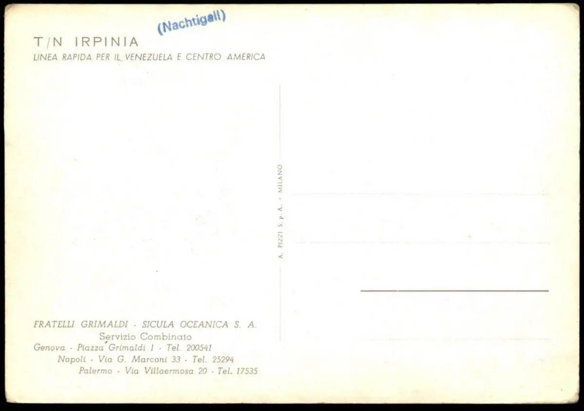 ALTE POSTKARTE T/N IRPNIA LINEA RAPIDA PER IL VENEZUELA E CENTRO AMERICAVerlag: A. Pizzi, MilanoGelaufen: neinErhaltung (s. Scan): gut / 916444