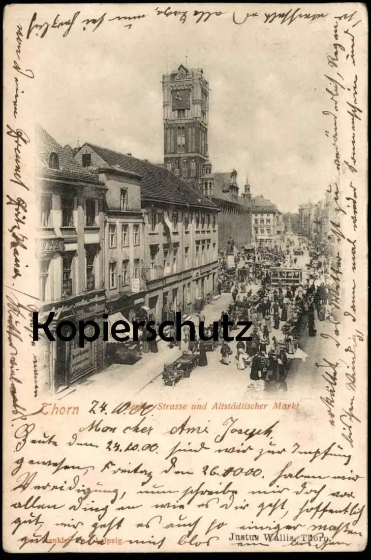 ALTE POSTKARTE THORN SEGLER-STRASSE UND ALTSTÄDTISCHER MARKT